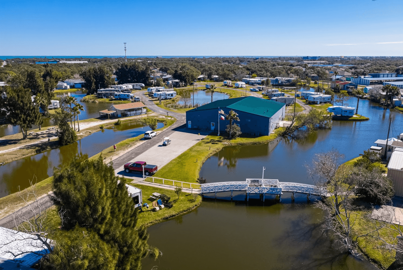 Woody Acres RV Resort, located on the Texas Gulf Coast, is a wonderful destination for family-friendly vacations or for a sunny winter escape for Winter Texans and Snowbirds. Don’t forget your four-legged family members at this pet-friendly RV site as you enjoy fantastic waterfront views and shaded RV sites. Watch birds, ducks, and turtles on Sandpiper Lake as you bike or stroll through miles of lovely streets in this affordable, secluded park. Woody Acres is set apart from the hustle-bustle of big cities, but just 7 minutes away from beautiful Rockport Beach on Aransas Bay. Full hook-up RV sites, fully-furnished cabin rentals, and even annual homes are waiting for you.